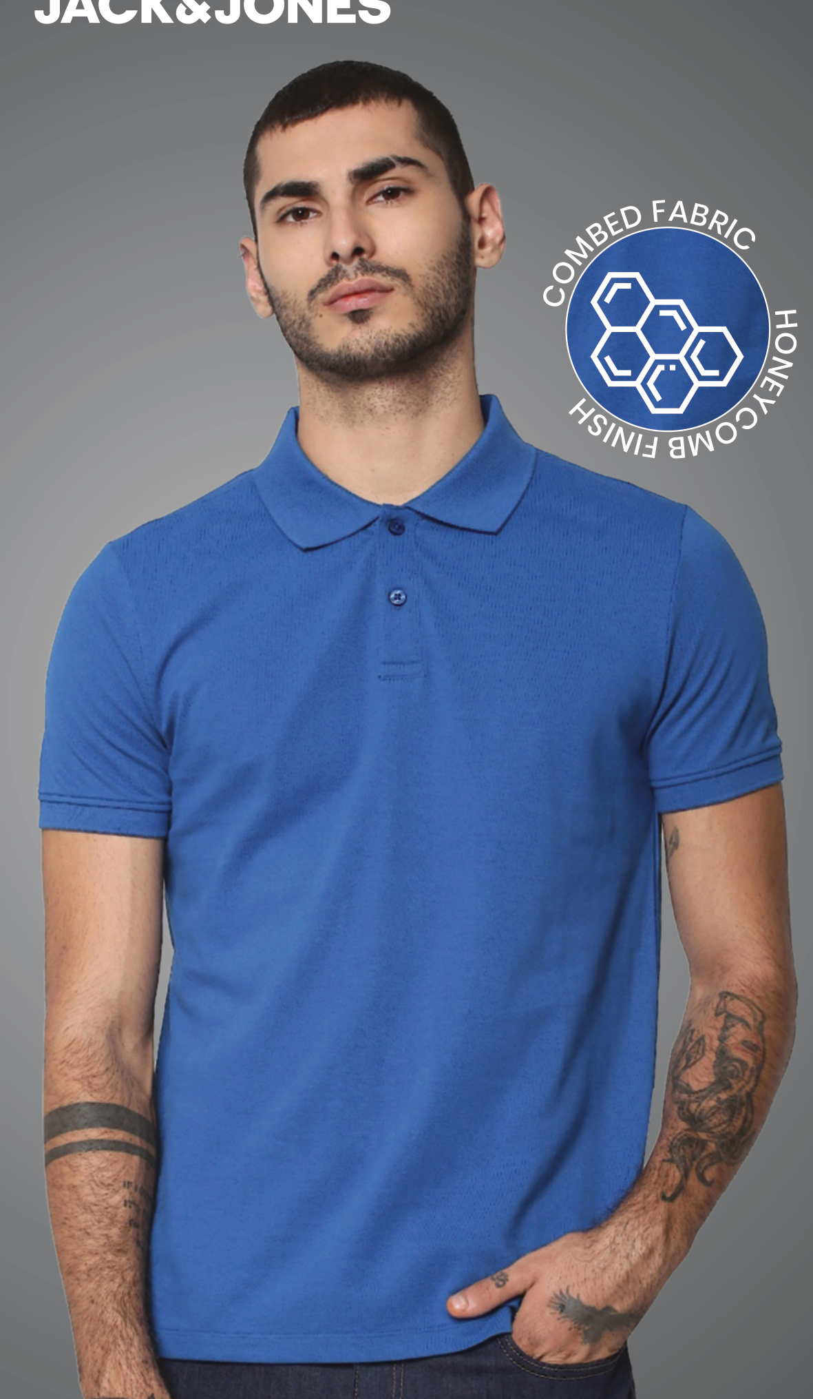 Jack & Jones Men's Royal Blue Combed Fabric Polo T-Shirt