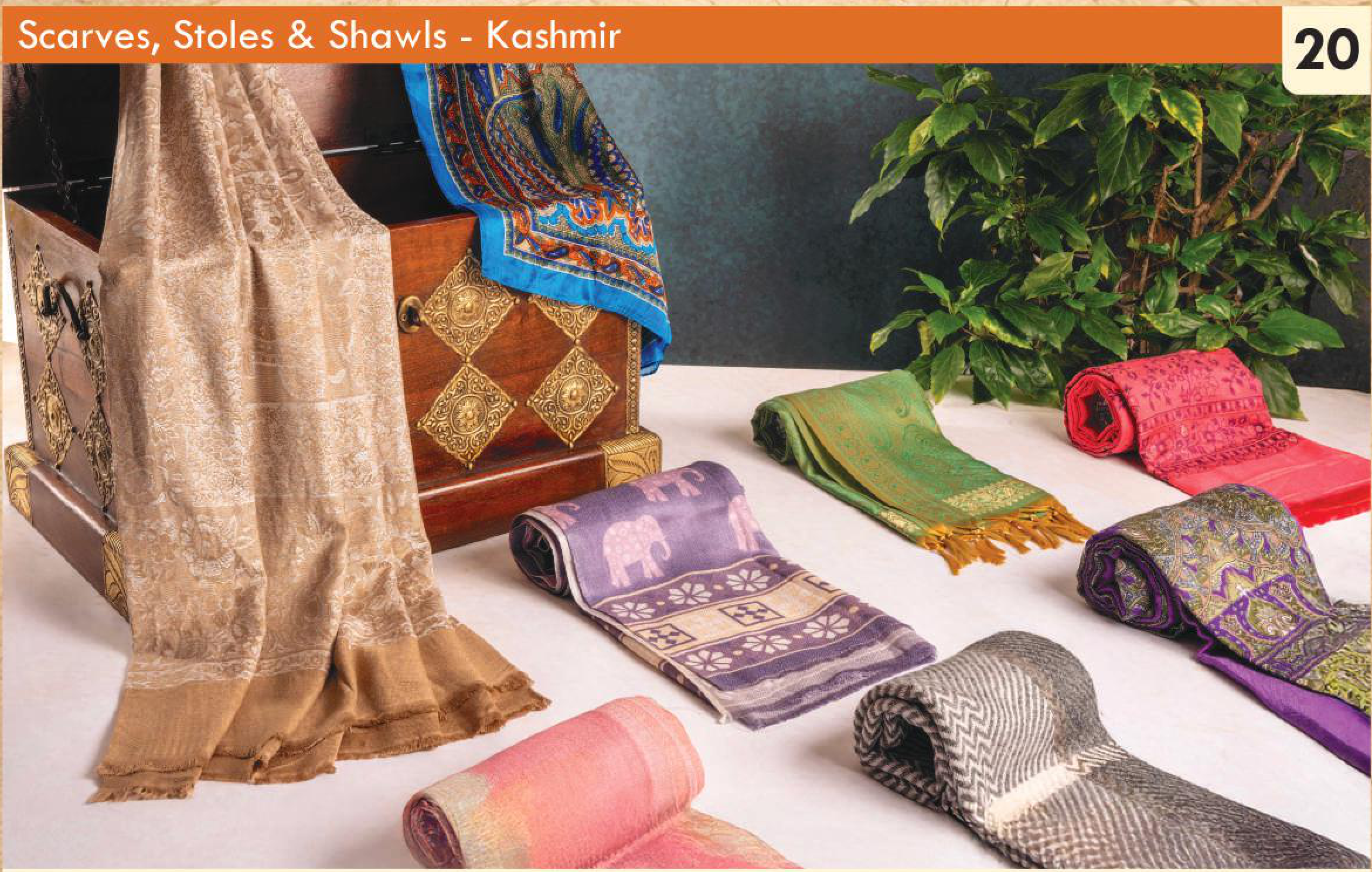 A collection of exquisite Kashmiri scarves and shawls crafted from a luxurious silk blend. These pieces feature intricate traditional patterns and vibrant colors, perfect for adding a touch of elegance to any outfit.
