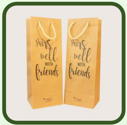 This set includes two kraft paper wine bottle gift bags, perfect for presenting your favorite vintages. Each bag features a charming "Pairs well with friends" message, adding a personal touch to your gift. Made from durable 120 GSM paper, these bags are designed to hold standard wine bottles securely.