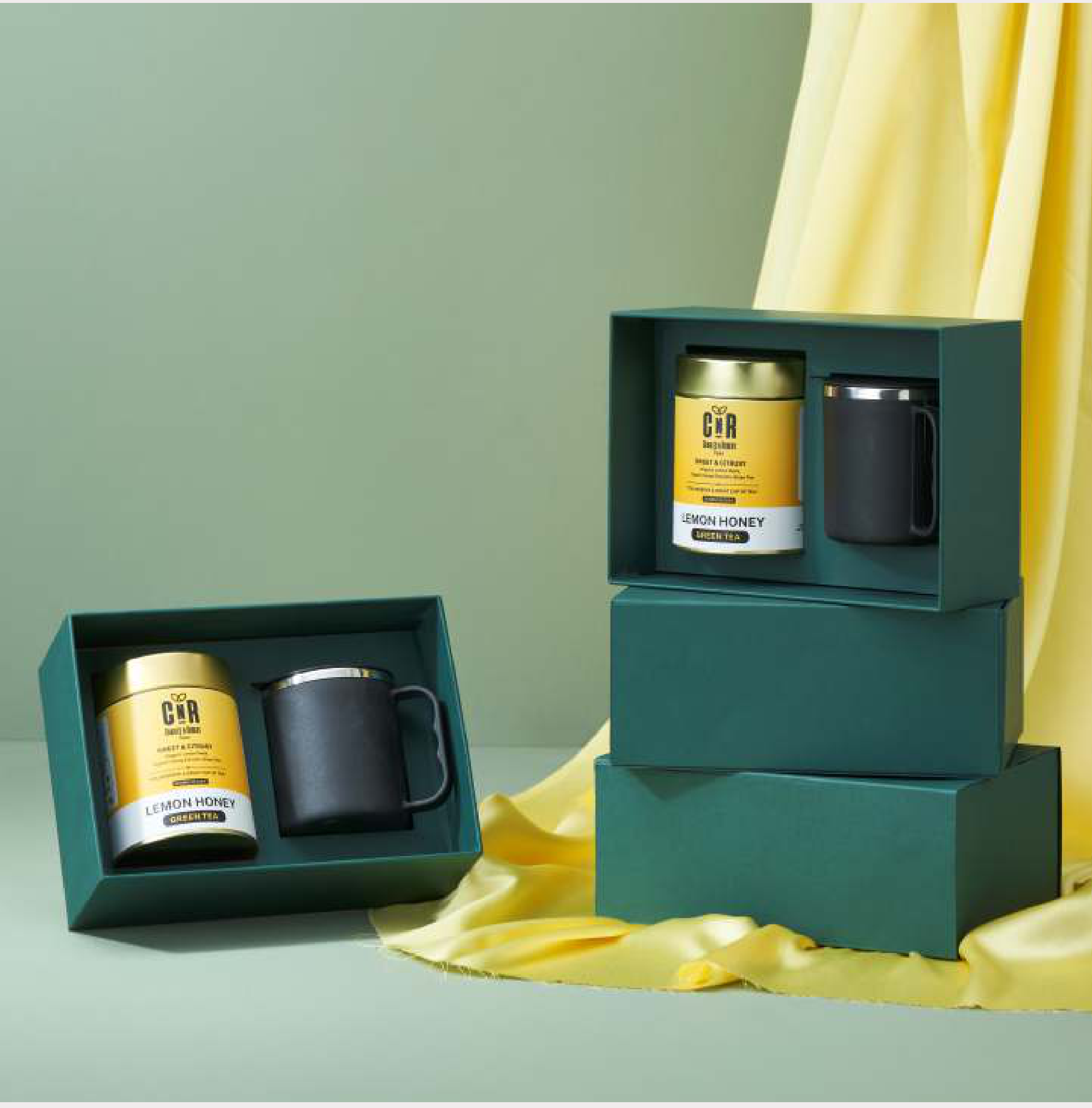 This gift set features a tin of Lemon Honey Green Tea and a stylish black mug. It's a perfect choice for tea lovers looking for a refreshing and flavorful experience.