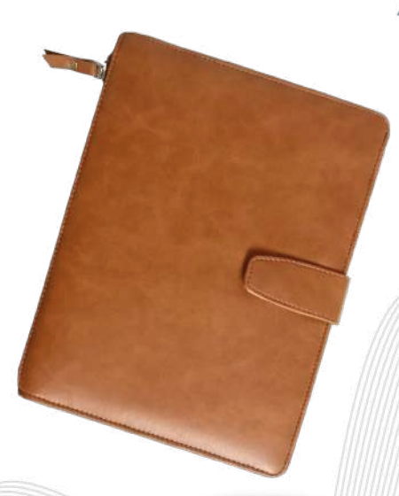 This premium Nescafe-size notebook (183 x 245 mm) features a soft light tan PU outer with a sleek magnetic loop and an over-the-edge zip closure for added security and elegance. With 192 pages of 80 GSM double-colour paper, it’s perfect for high-end corporate gifting or executive use, offering both style and function in one compact package.