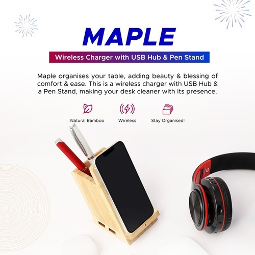 Maple 15W Wireless charger & USB Hub with Pen Stand