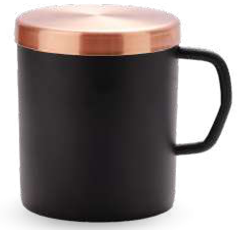 This stylish mug features a matte black finish and a striking copper lid, offering a modern and sophisticated aesthetic. Its durable construction makes it ideal for everyday use, whether for hot or cold beverages.