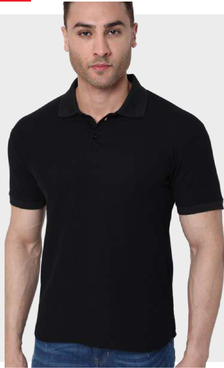 A classic black polo t-shirt crafted from comfortable cotton fabric. This versatile t-shirt features a collared neckline with a button placket, making it suitable for casual outings or smart-casual wear.