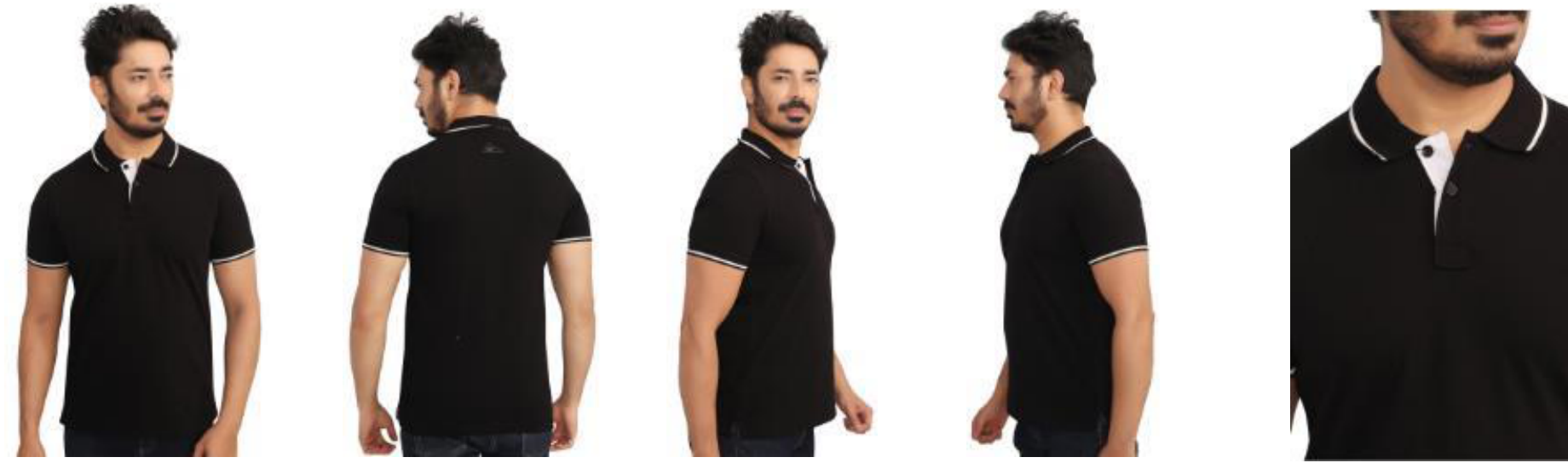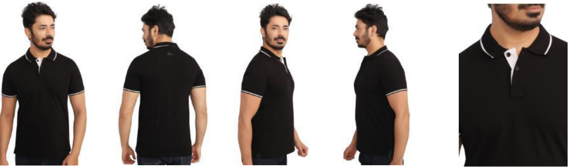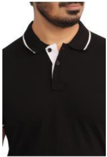 This classic black polo t-shirt for men is crafted from comfortable cotton fabric. It features a contrasting white trim on the collar and sleeves, adding a touch of style. Perfect for casual outings or a smart-casual look.