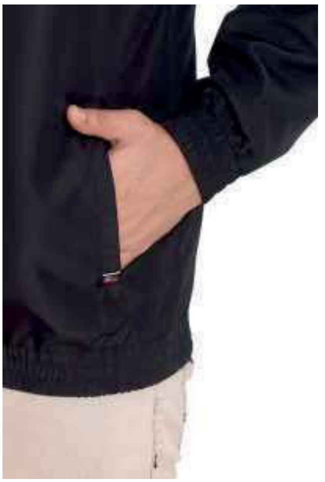 Features: Full Zip Closure, Stand-up Collar, Ribbed Cuffs and Hem, Side Pockets, Striped Detail