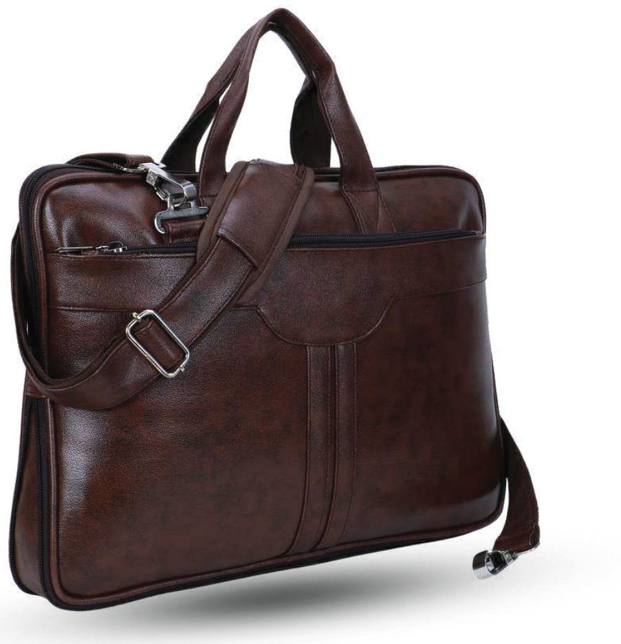 This stylish brown faux leather briefcase is perfect for professionals on the go. It features multiple compartments for organization and a detachable shoulder strap for comfortable carrying. The durable construction ensures it can withstand daily use.