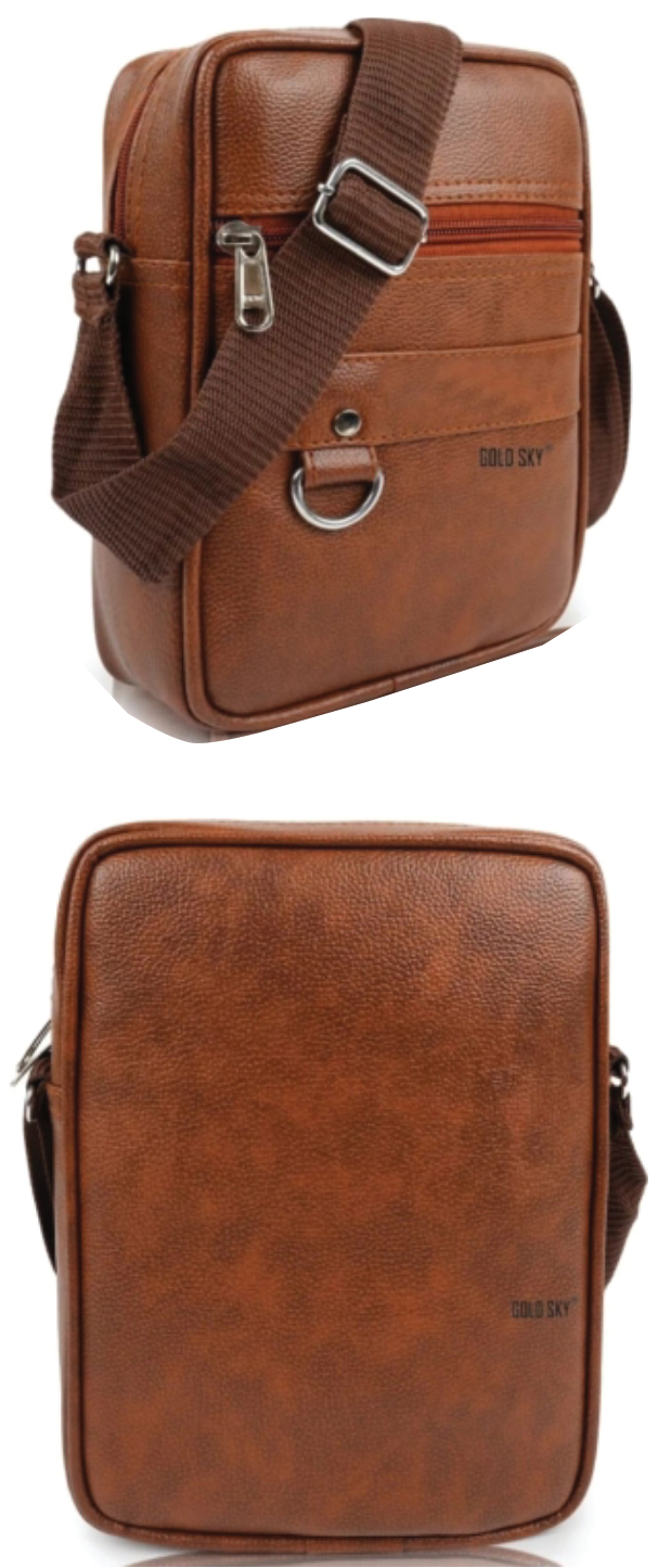 This stylish crossbody bag is crafted from durable brown faux leather, offering a classic look. It features an adjustable strap for comfortable wear and multiple compartments for organized storage of your essentials.