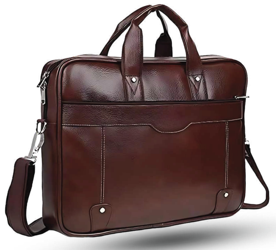 This classic brown leather briefcase offers a sophisticated look for professionals. It features multiple compartments for organization and a detachable, adjustable shoulder strap for versatile carrying options. The durable construction ensures it can withstand daily use.