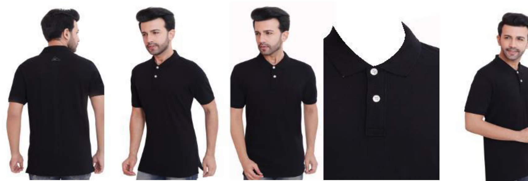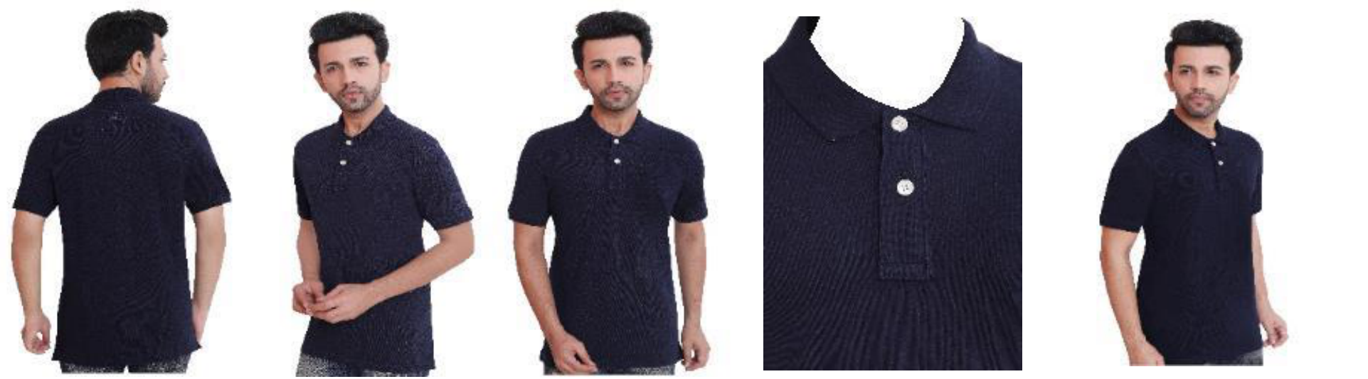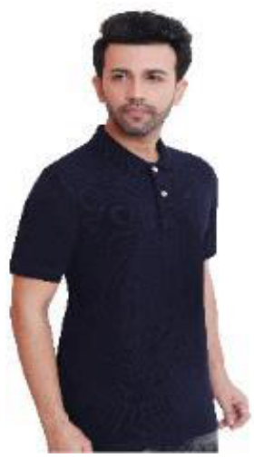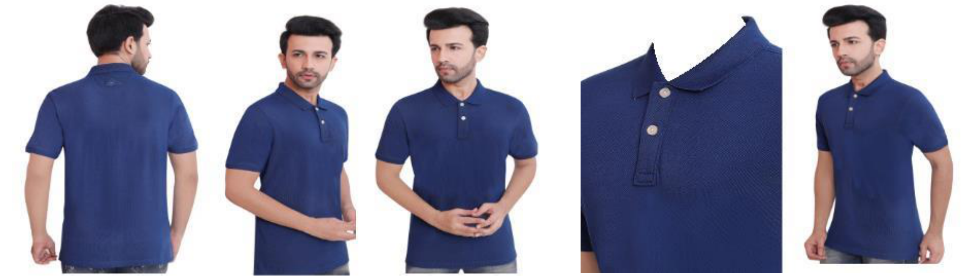 This men's polo t-shirt features a classic navy blue color with a subtle textured pattern. It has a comfortable fit, short sleeves, and a button-up collar, making it a versatile addition to any casual wardrobe.