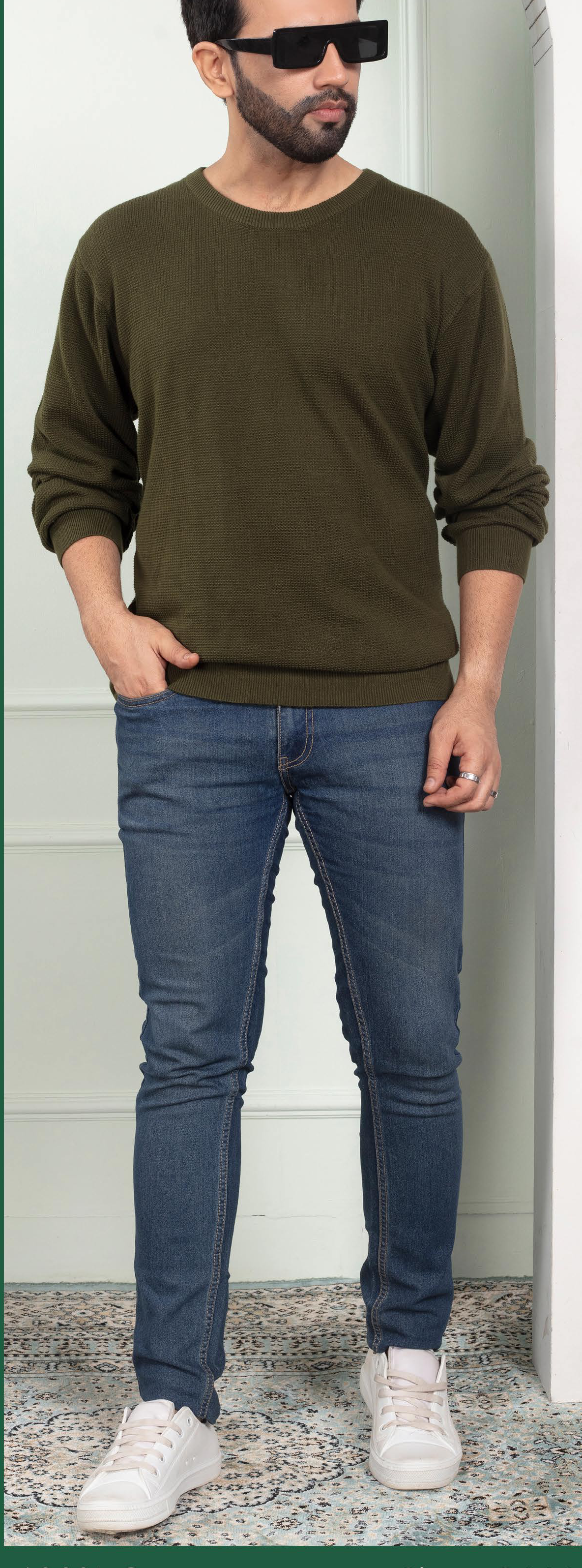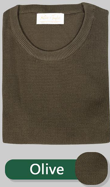 This men's crew neck sweater features a subtle textured knit in a versatile olive green hue. It offers a comfortable fit and a classic style, perfect for layering during cooler weather. The ribbed cuffs and hem provide a snug feel.