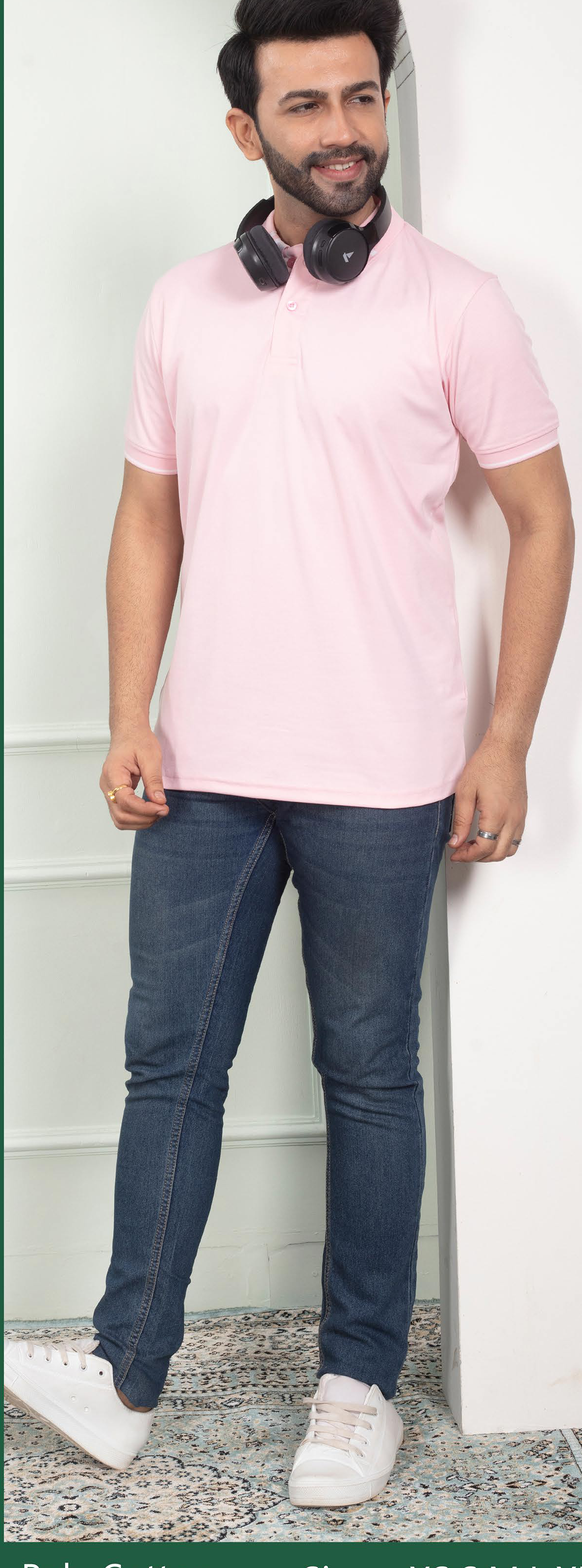 A comfortable and stylish pink polo t-shirt for men, made from breathable cotton. This versatile t-shirt is perfect for casual wear and everyday styling.