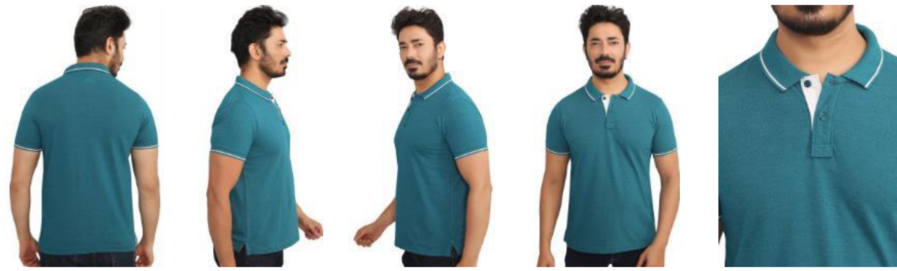 This men's polo t-shirt is crafted from comfortable cotton, featuring a classic teal color with subtle white trim on the collar and sleeves. It offers a relaxed yet stylish look, perfect for casual outings or everyday wear.