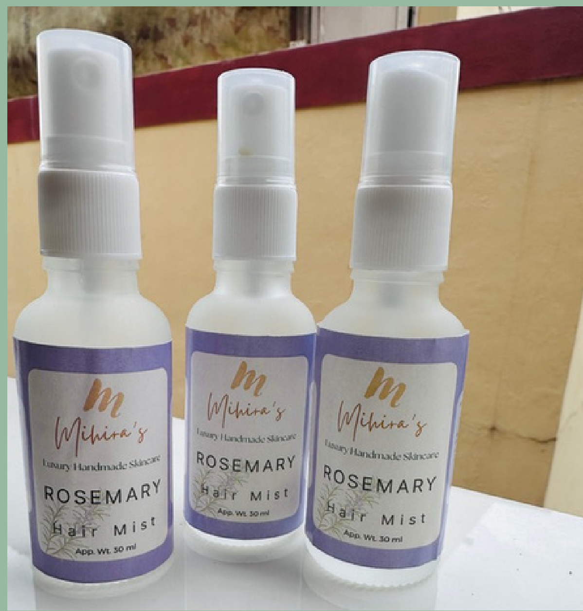 Experience the benefits of rosemary with this luxury handmade hair mist. Formulated for healthy hair, this mist is a perfect addition to your hair care routine. Each bottle contains approximately 30 ml of product.