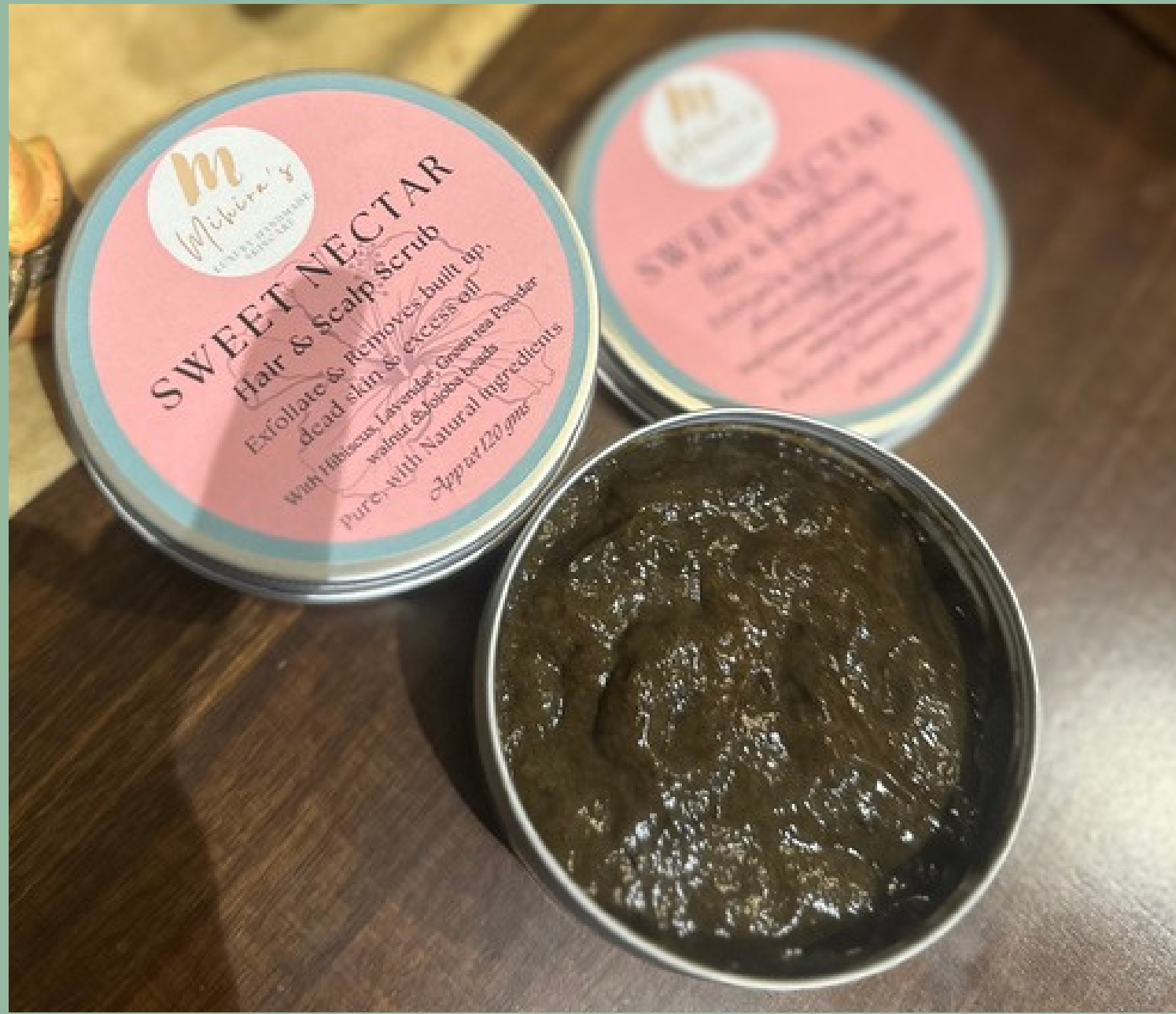 This Sweet Nectar Hair & Scalp Scrub is designed to exfoliate and remove built-up dead skin and excess oil. Formulated with natural ingredients like Hibiscus, Lavender, Green Tea Powder, walnut, and Jojoba beads, it offers a pure and invigorating treatment for your hair and scalp. Approximately 120 gms.