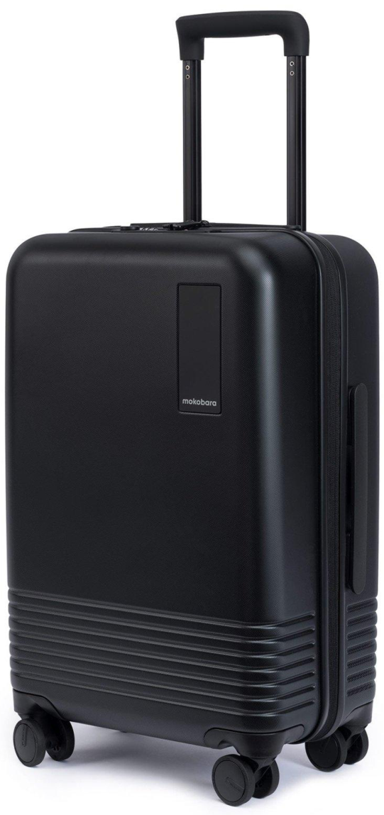 This Mokobara hardside spinner luggage offers durable and stylish travel. It features a textured exterior for scratch resistance and smooth-gliding spinner wheels for effortless maneuverability. The telescopic handle ensures comfortable handling for travelers of all heights.