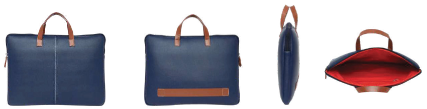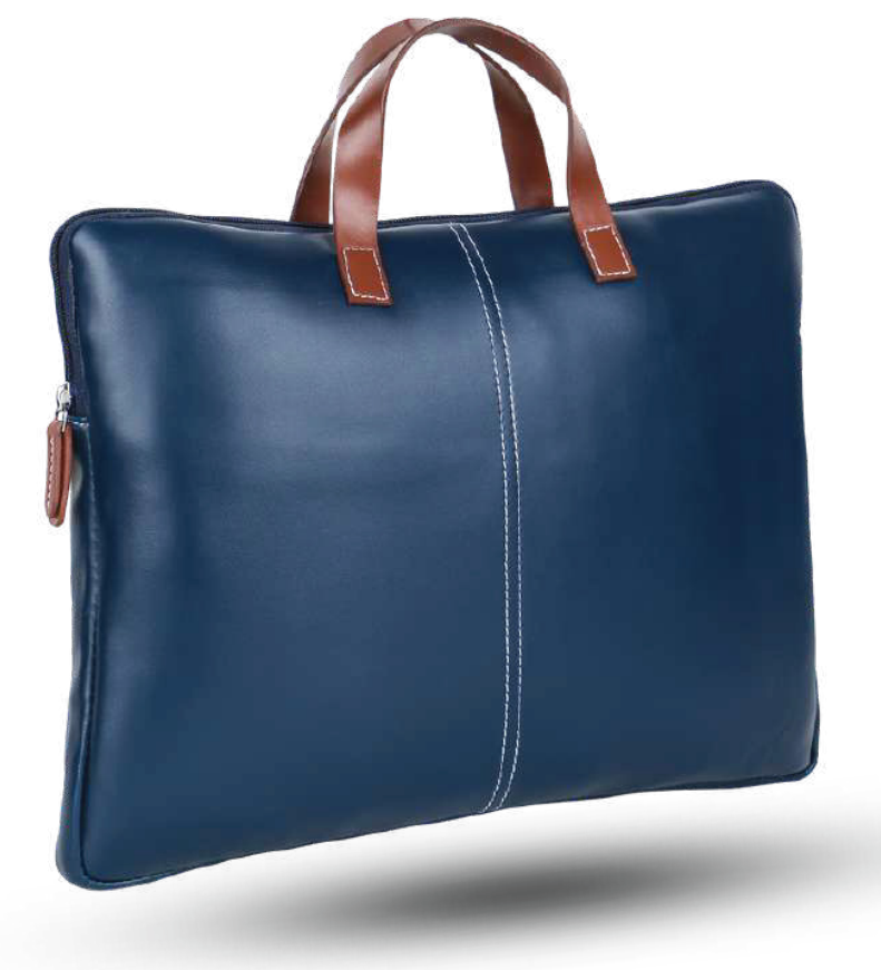 This sophisticated navy blue briefcase is crafted from high-quality leather, featuring contrasting tan handles for a classic look. Its sleek design and durable construction make it ideal for professionals on the go.