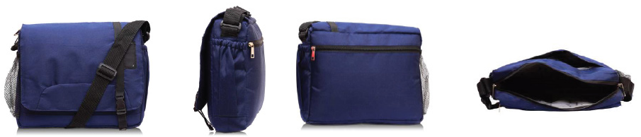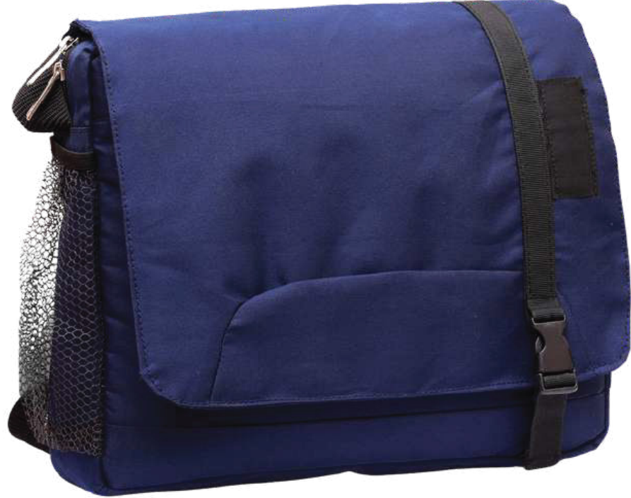 A practical and durable navy blue messenger bag, perfect for daily use. It features a convenient mesh side pocket for easy access to essentials and a secure buckle closure for the main flap. This bag offers ample space for your belongings.