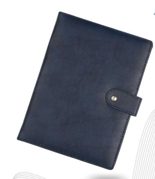 Designed for the modern professional, this navy blue soft PU notebook includes a smart PU loop with a snap button closure. Sized at 183 x 245 mm, the notebook contains 192 pages of 80 GSM paper with a polished dual-colour layout. Custom branding options make it a sleek yet functional choice.