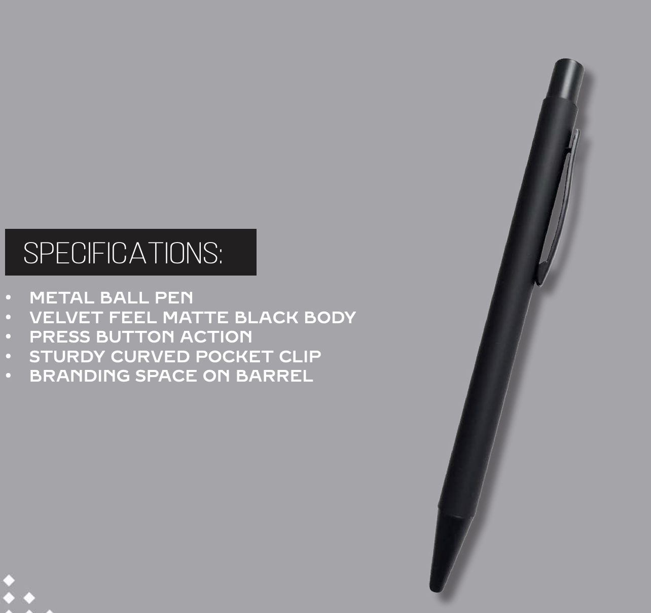 The Noir Press is a matte black, velvet-feel metal pen that exudes power and sophistication. Its press-button mechanism and gently curved clip offer ease of use and executive appeal—perfect for business meetings, events, or gifting.