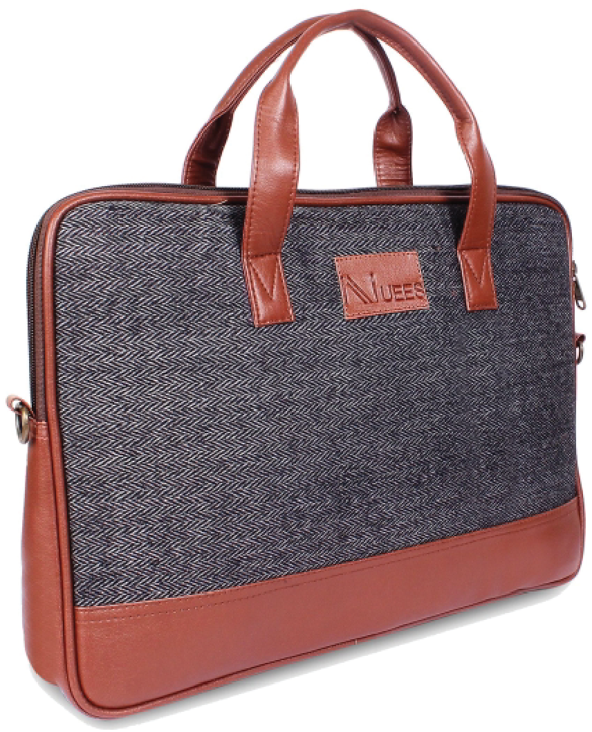 NUEES Herringbone Pattern Laptop Bag with Leather Accents