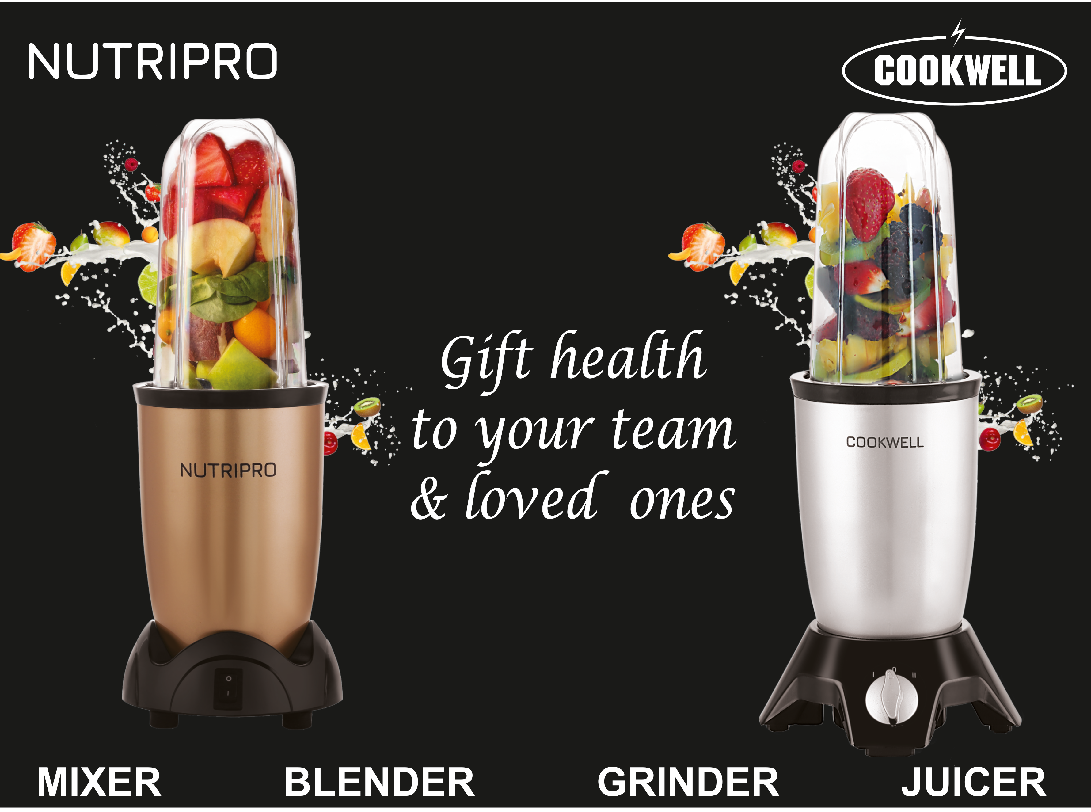 This Nutripro Cookwell personal blender and grinder is perfect for making healthy smoothies, shakes, and grinding spices. It's designed for convenience and efficiency, making it an ideal addition to any kitchen. Gift health to your team and loved ones with this versatile appliance.