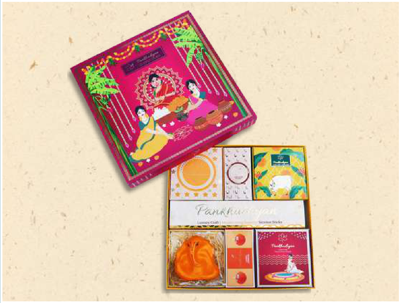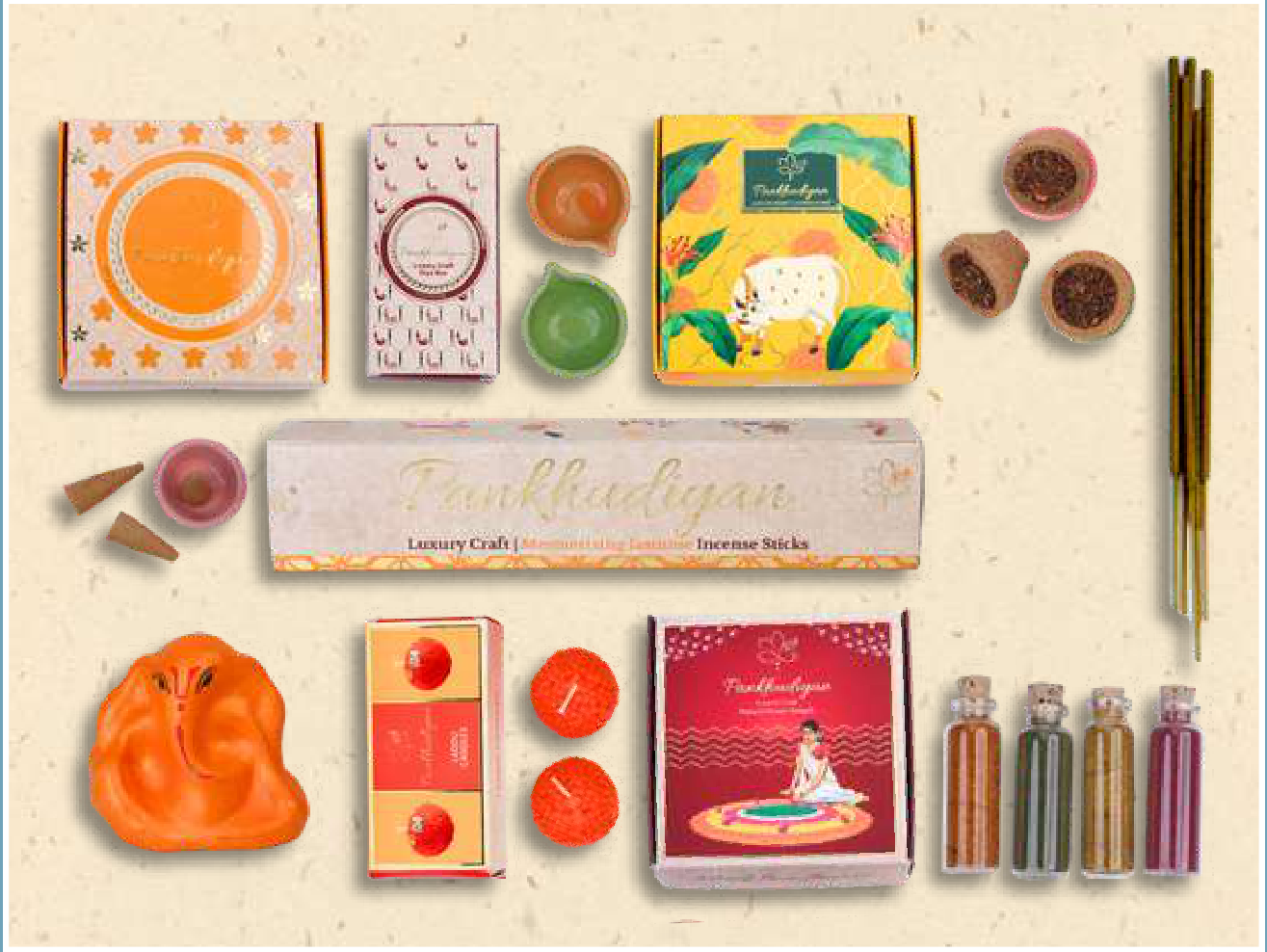 This exquisite gift box features Pankhuryan luxury incense sticks, designed to bring a serene and aromatic ambiance to your home. The set includes beautifully packaged incense and other decorative items, making it an ideal choice for gifting or personal indulgence.