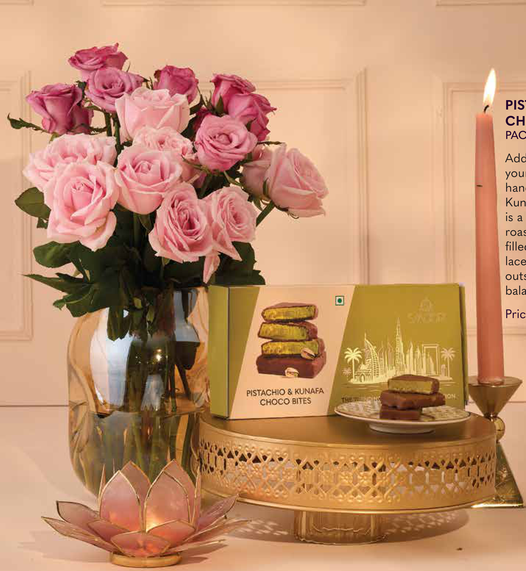 Indulge in the exquisite combination of pistachio and kunafa flavors, enrobed in rich chocolate. These delightful bites offer a unique sweet and nutty experience, perfect for gifting or personal enjoyment.