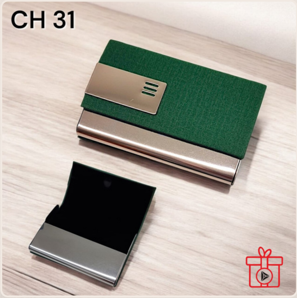 Premium Green Business Card Holder with Metal Accent