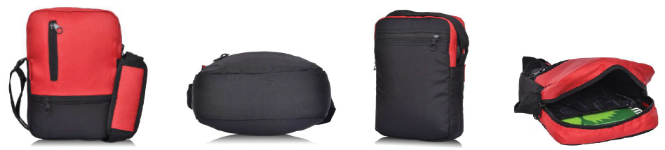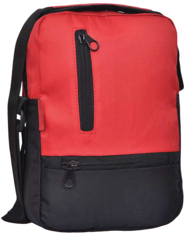 A practical and stylish crossbody bag featuring a durable nylon construction in a vibrant red and black color combination. It includes multiple zippered pockets for secure storage and an adjustable strap for comfortable wear.