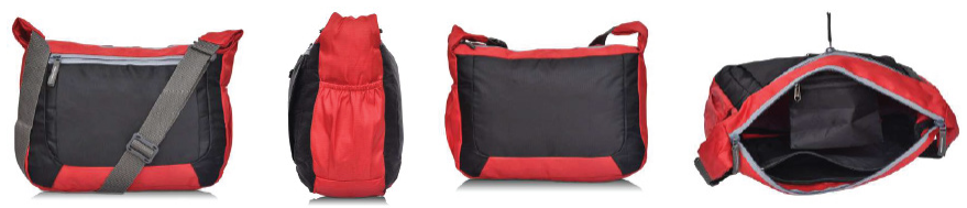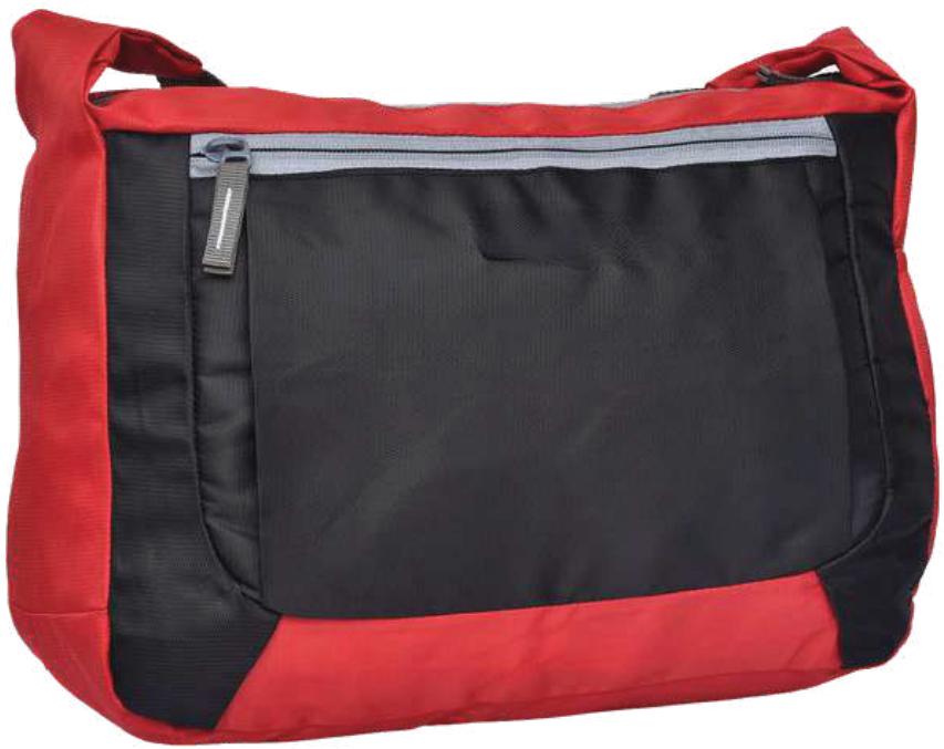 This practical messenger bag features a durable nylon construction in a striking red and black color combination. It includes a zippered front pocket for easy access to essentials and a comfortable shoulder strap for everyday use.