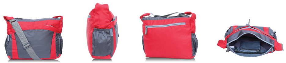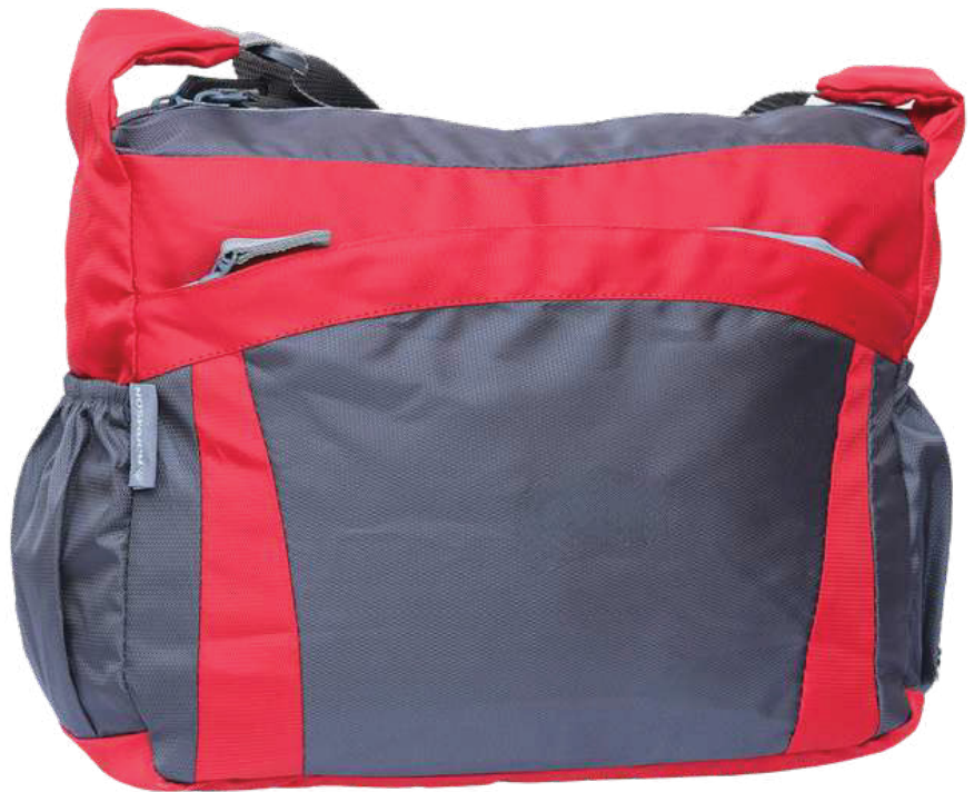 This practical messenger bag is crafted from durable nylon in a striking red and grey color combination. It features multiple pockets and adjustable straps for comfortable, everyday use.