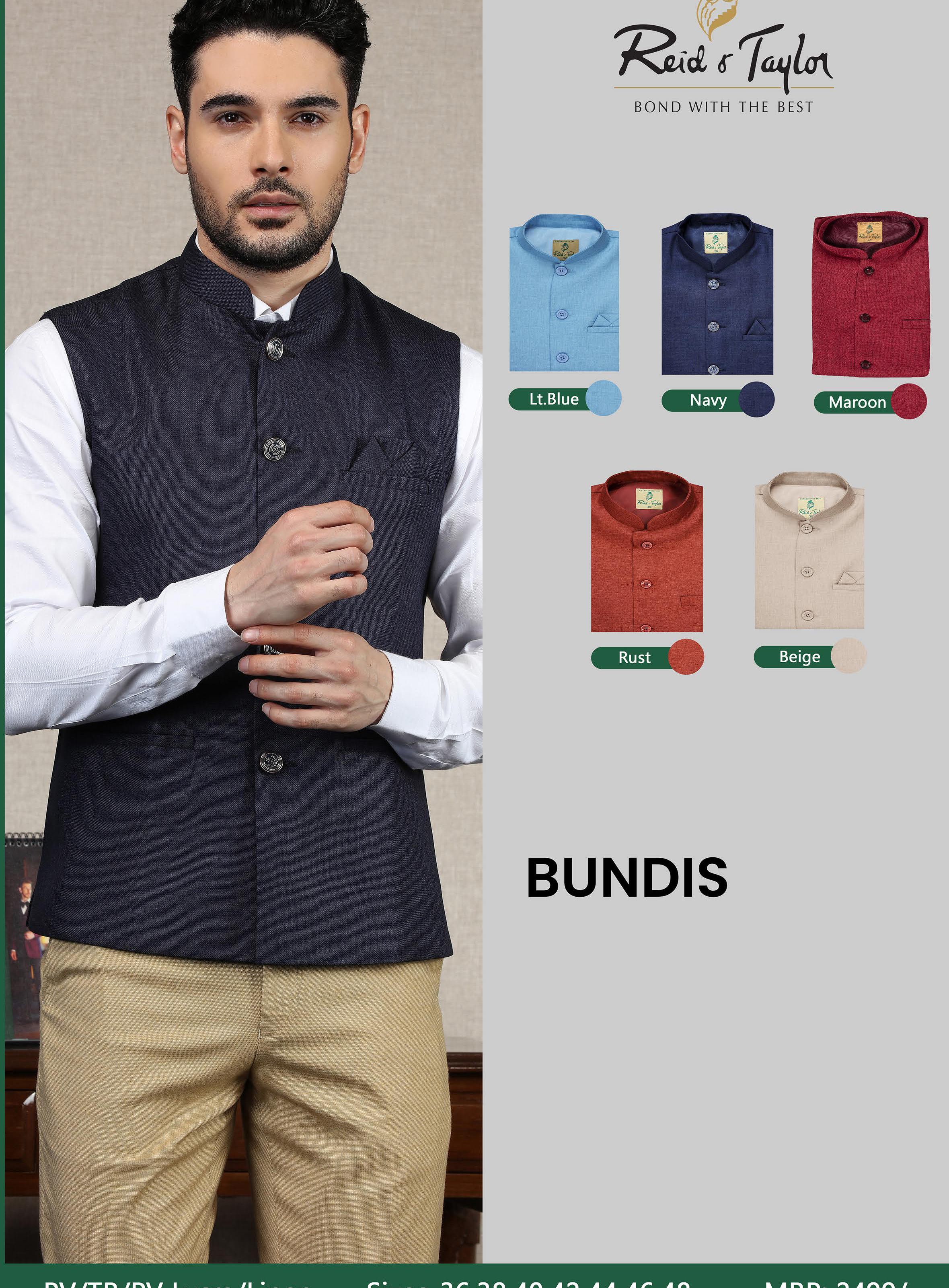 This stylish bundis vest from Reid & Taylor is crafted for a sophisticated look. It features a classic Nehru collar and button-down front, perfect for layering over shirts for traditional or semi-formal occasions. Available in a range of rich colors.