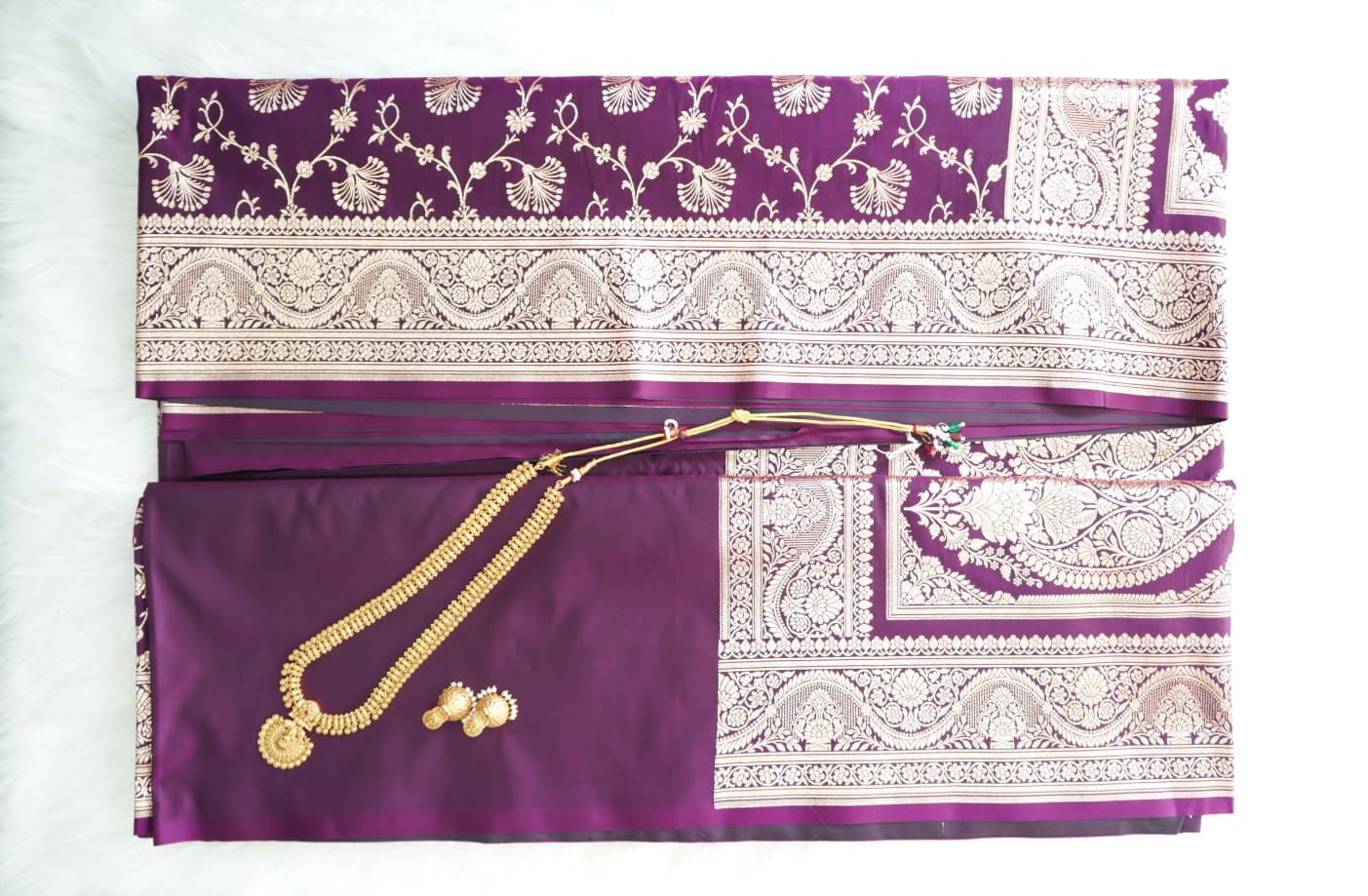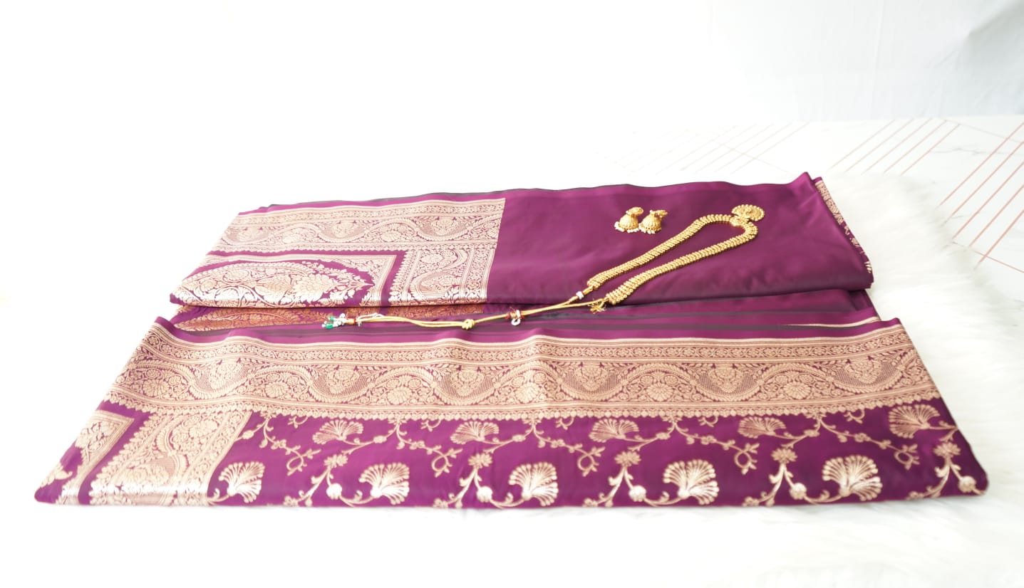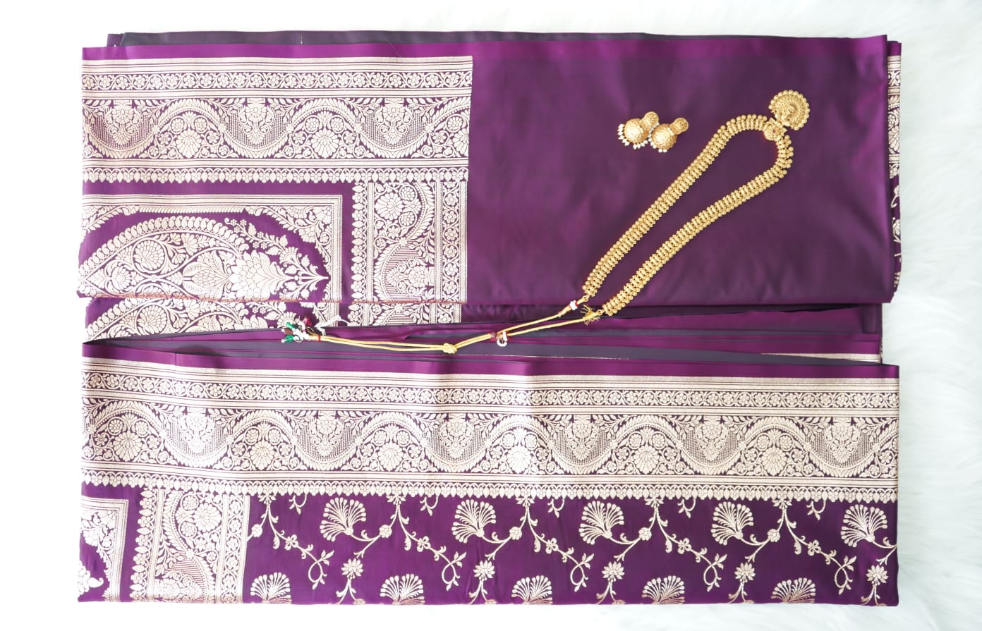 Royal Plum Banarasi Silk Saree with Antique Zari Weave