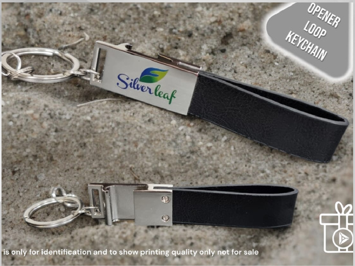This practical keychain features a durable loop and a metal opener, perfect for everyday use. The sleek design is complemented by the Silverleaf branding, making it a stylish accessory. It's ideal for keeping your keys organized and always having a bottle opener handy.