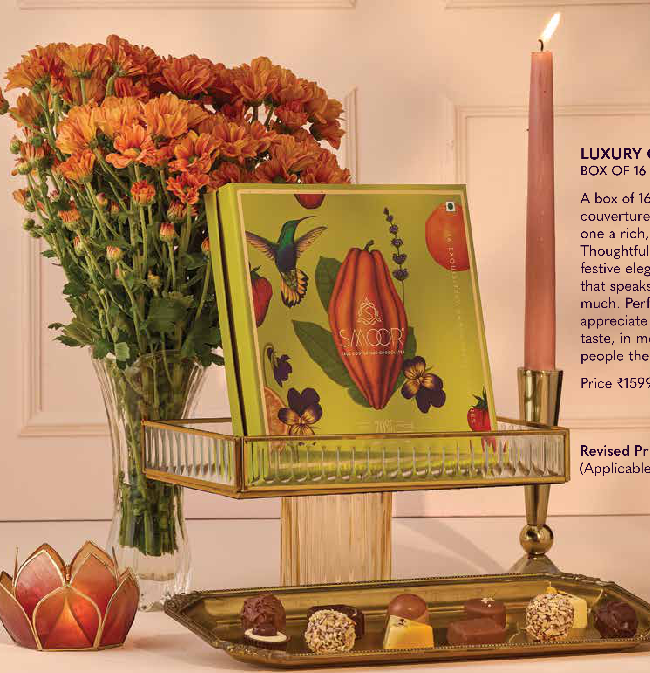 Indulge in a box of 16 exquisite Smoor couverture chocolates, offering a rich and delightful taste experience. This thoughtfully curated selection is perfect for festive gifting and for those who appreciate fine confectionery.
