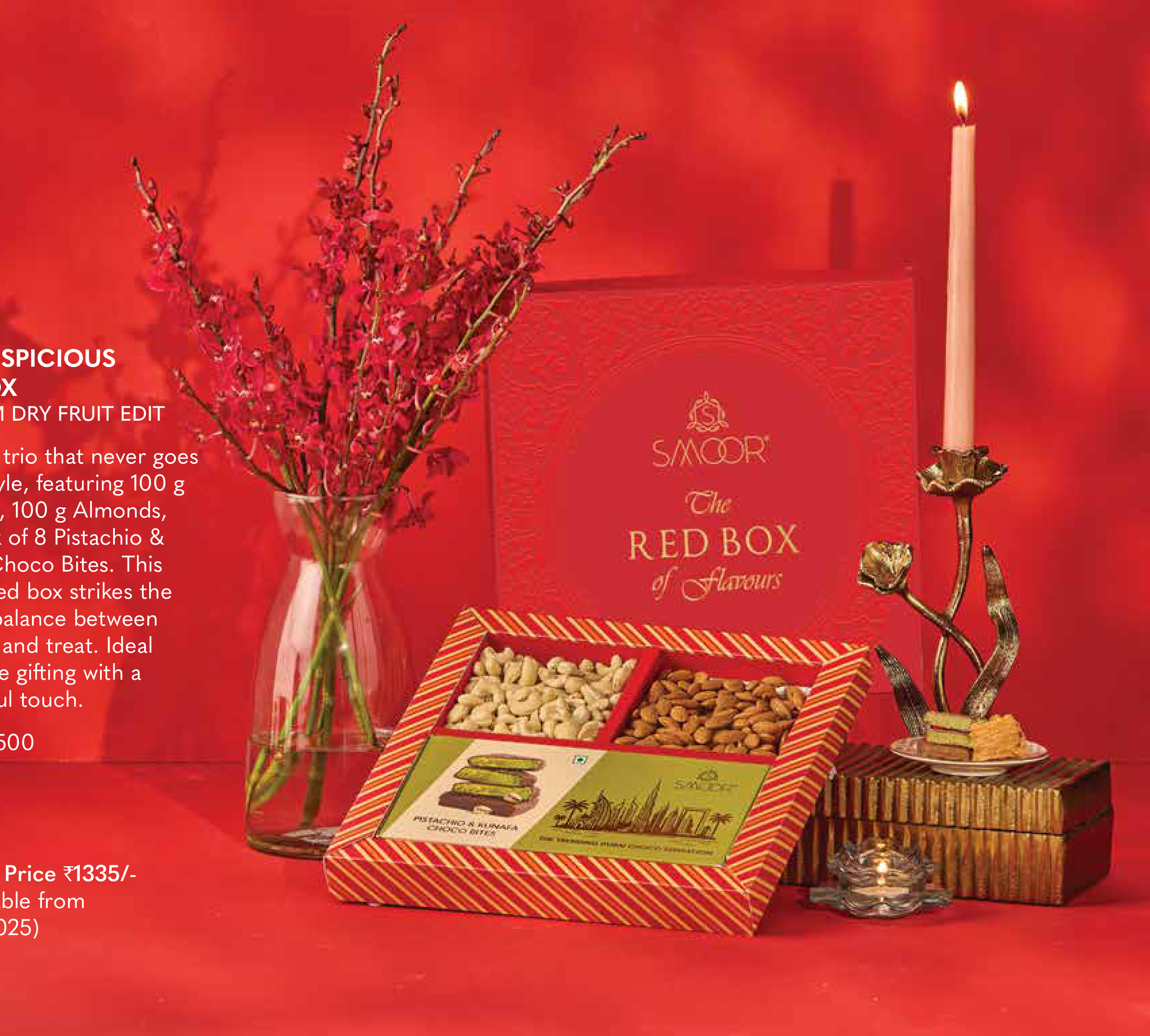 This exquisite gift box features a trio of gourmet treats, including 100g of Almonds and 100g of Pistachios, along with 8 Pistachio & Choco Bites. The beautifully designed red box offers a perfect balance of indulgence and elegance, making it an ideal choice for gifting.