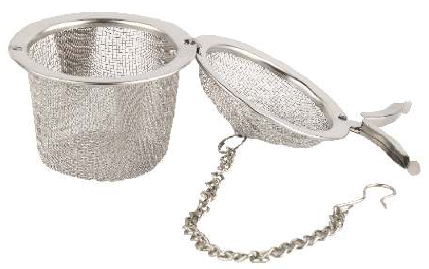 This stainless steel mesh tea infuser is designed for brewing loose leaf tea. Its fine mesh allows for optimal infusion while preventing tea leaves from escaping. The attached chain and hook make it easy to suspend in a mug or teapot and remove after steeping.