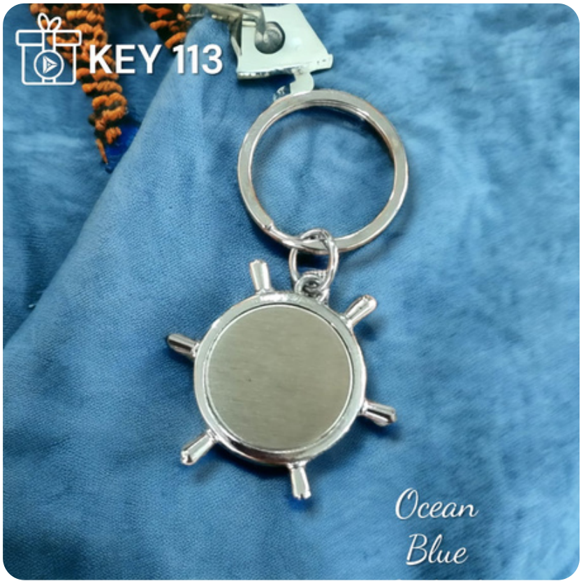This sublimation blank keychain features a ship wheel design, perfect for custom printing. Its durable metal construction ensures longevity, making it a practical and stylish accessory for keys or bags. The blank surface is ready for your personalized designs.