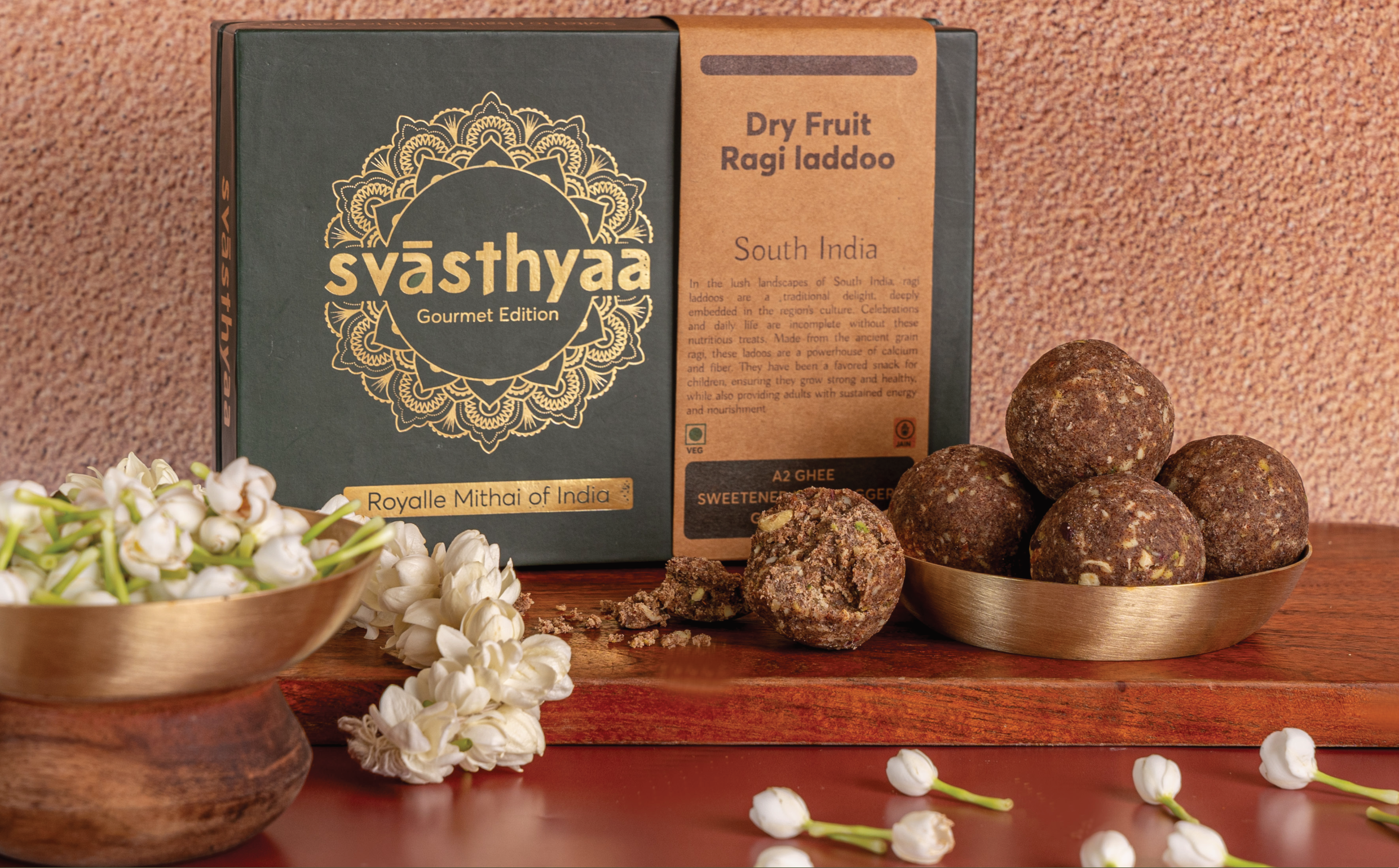 Experience the traditional delight of South India with Svasthyaa's Dry Fruit Ragi Laddoo. Made from the ancient grain ragi, these laddoos are a powerhouse of calcium and fiber, offering sustained energy and nourishment for all ages. This gourmet edition is a perfect blend of health and taste.