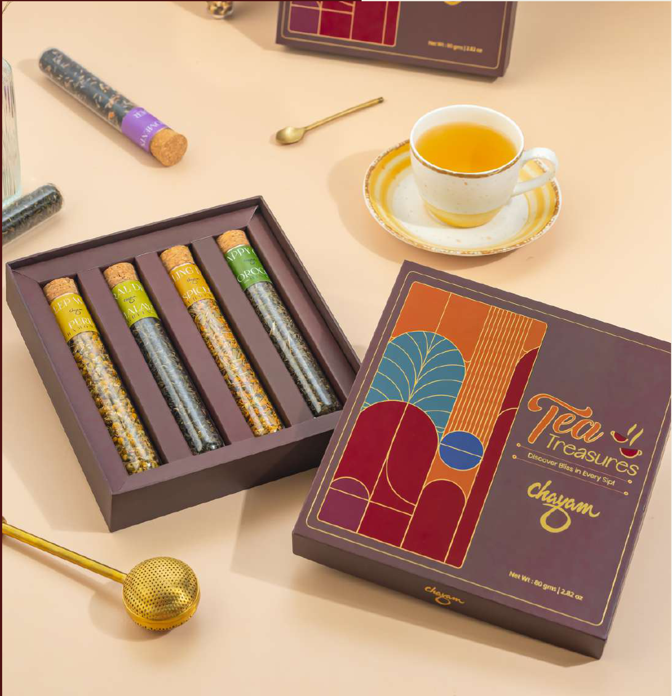 Experience a curated selection of premium teas with this exquisite gift box. Each tube contains a unique blend, offering a delightful journey of flavors and aromas. Perfect for tea connoisseurs and as a thoughtful gift.