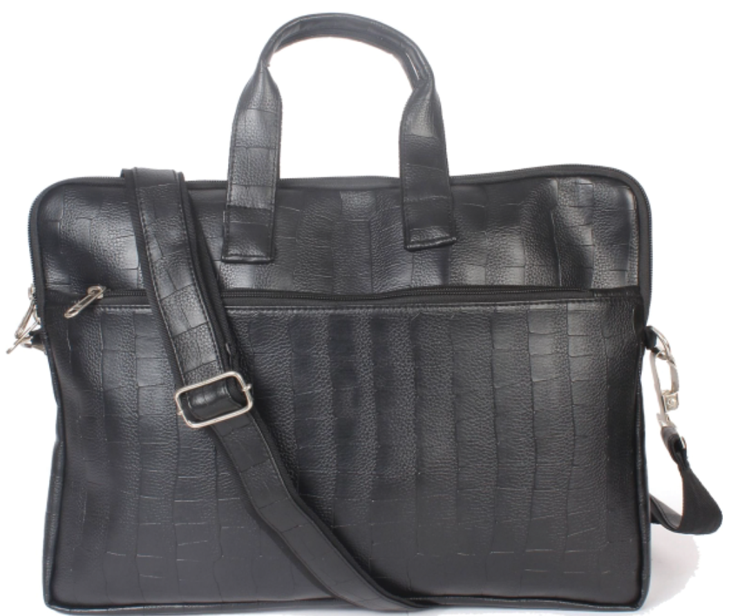 This stylish black briefcase is crafted from textured faux leather, offering a professional look for everyday use. It features a spacious main compartment, an exterior zippered pocket, and a comfortable adjustable shoulder strap for versatile carrying options.