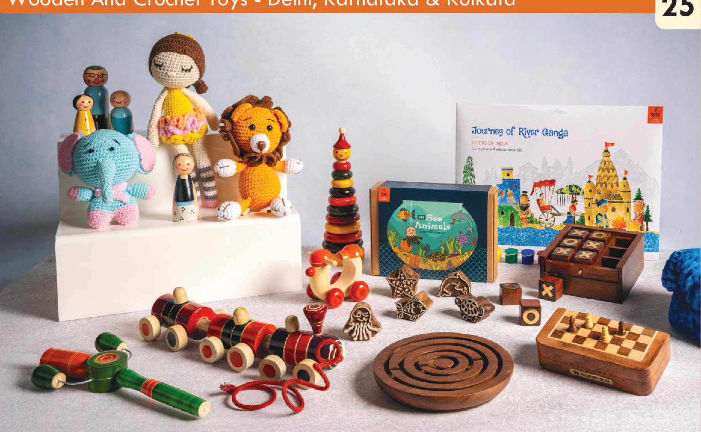 A delightful collection of wooden and crochet toys designed to engage and educate children. This assortment includes interactive games, charming figures, and DIY kits, promoting creativity and learning through play. Perfect for developing fine motor skills and cognitive abilities.