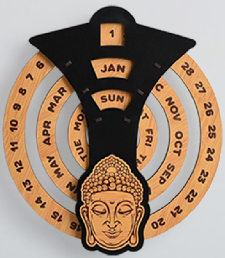 Features: Perpetual Calendar, Rotating Mechanism, Buddha Motif, Wall Mountable