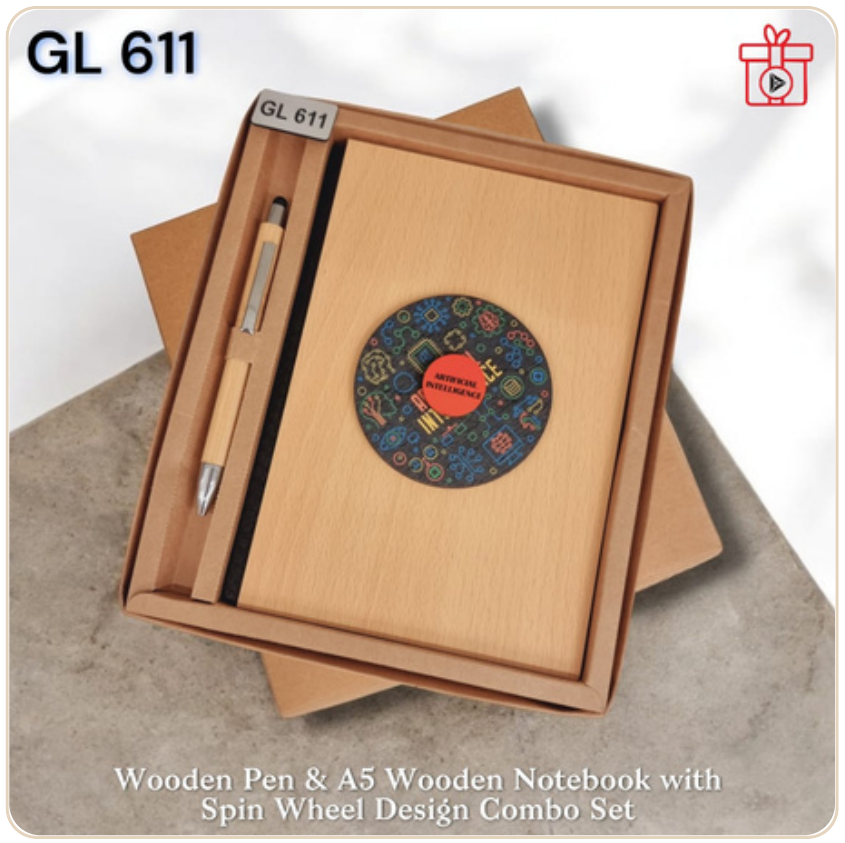 Wooden Pen and A5 Notebook Combo Set with Spin Wheel Design