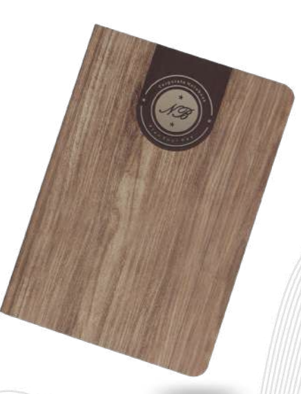A visually appealing notebook with a wooden texture print on a hard cover, this Nescafe-sized (183 x 245 mm) edition exudes a natural, minimalist charm. Rounded corners and customizable features make it a great fit for branding needs. Inside, it offers 192 pages of 80 GSM paper with a dual-colour corporate design.