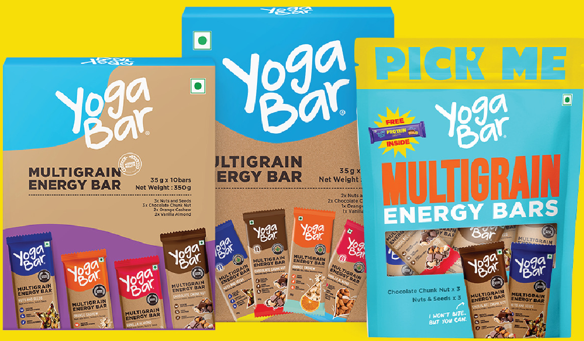 A variety pack of Yoga Bar Multigrain Energy Bars, offering a healthy and convenient snack option. Each bar is packed with nuts, seeds, and grains for sustained energy.
